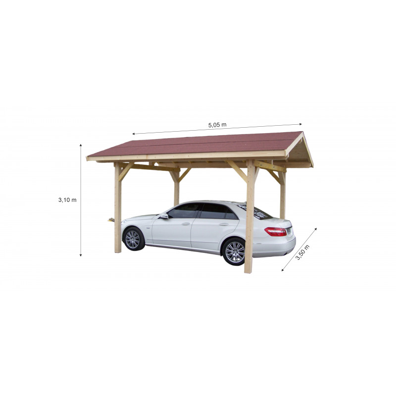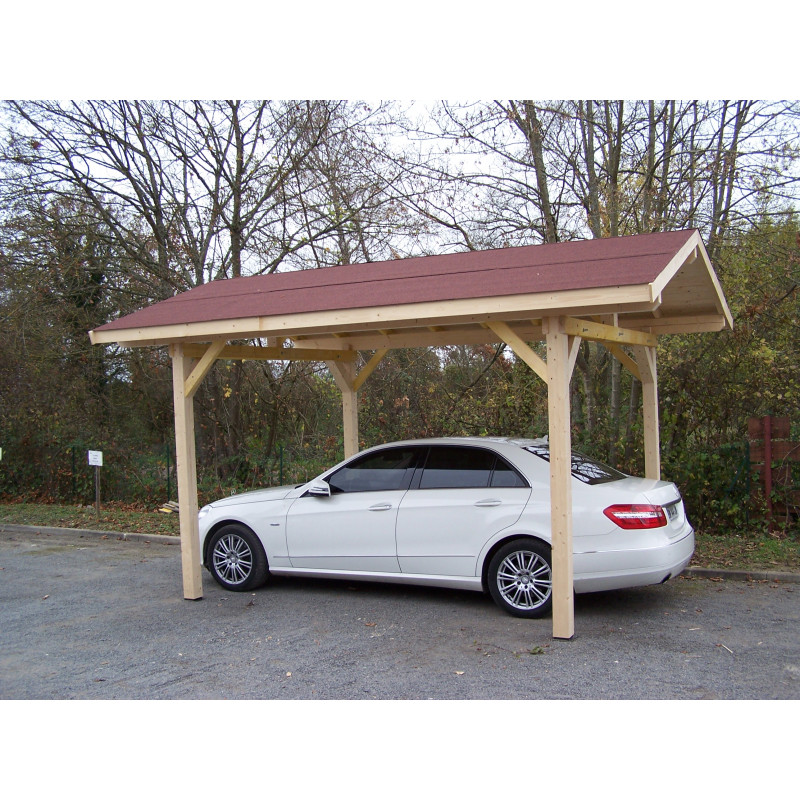 Tettoia posto auto in legno abete 300x362 cm – Altezza 310 cm – Carport auto con doppia falda con tegole bituminose – KA3550VS Foresta