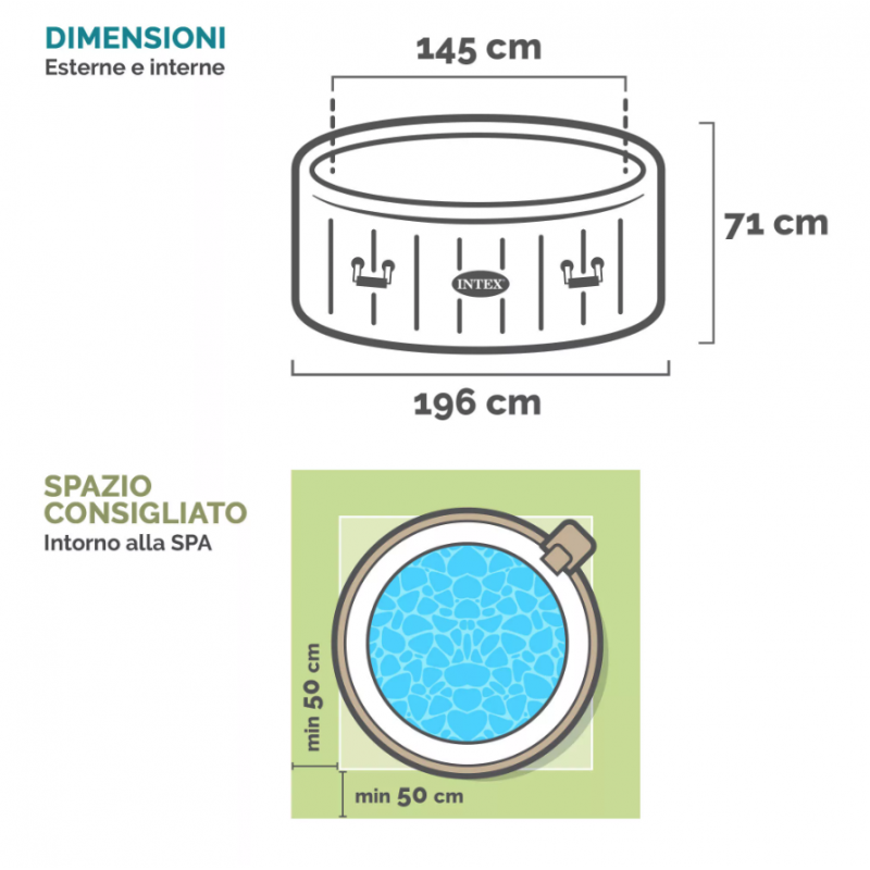 Spa gonfiabile idromassaggio 4 posti con WiFi, luce LED e poggiatesta, diametro 196 cm altezza 71 cm riscaldamento 40°C - Intex