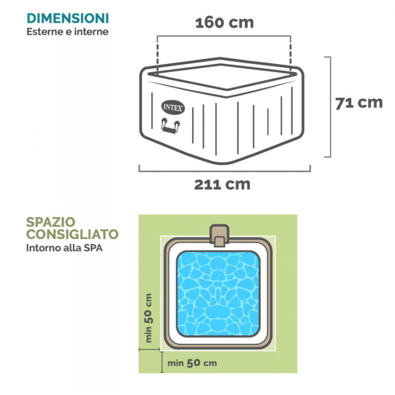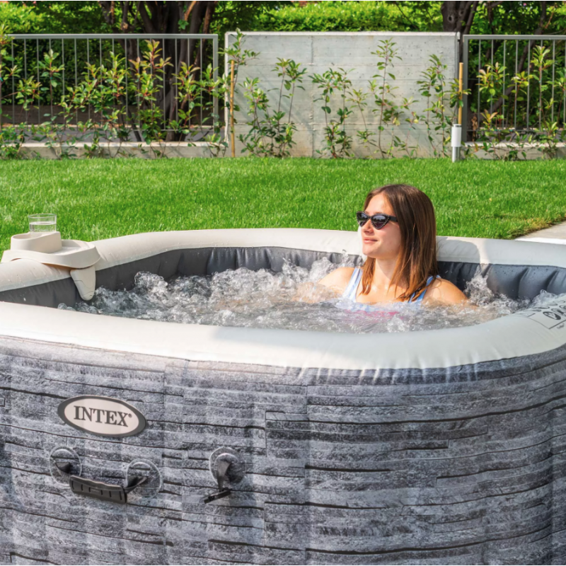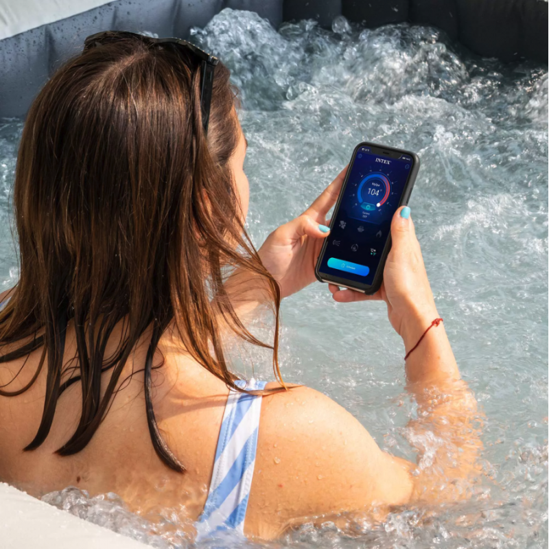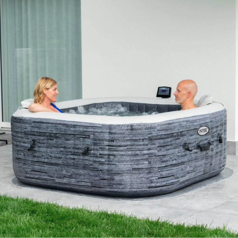 Spa gonfiabile idromassaggio quadrata 4 posti con WiFi e luce LED, 211x211x71 cm riscaldamento 40°C per esterno - Intex