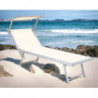Lettino Prendisole da Spiaggia con Tettuccio Pieghevole Bianco Rimini