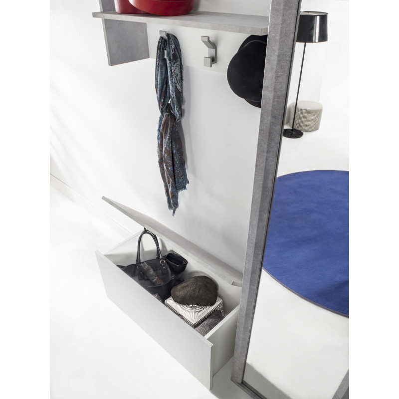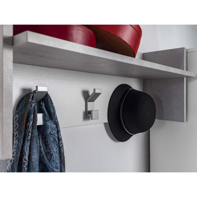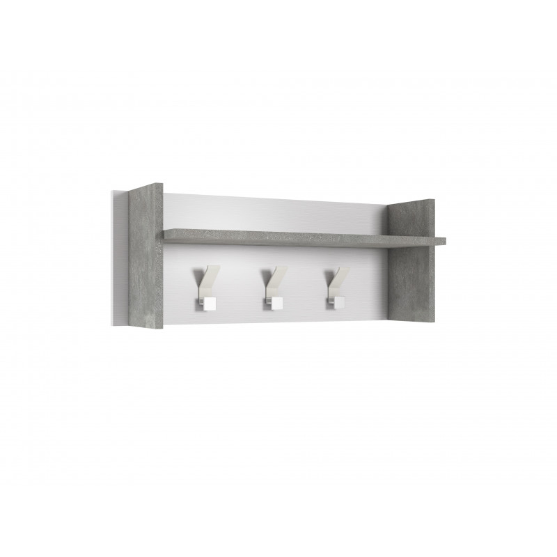 Pannello appendiabiti a parete con ripiano e 3 ganci bianco e cemento 90x29x34 cm - Terraneo
