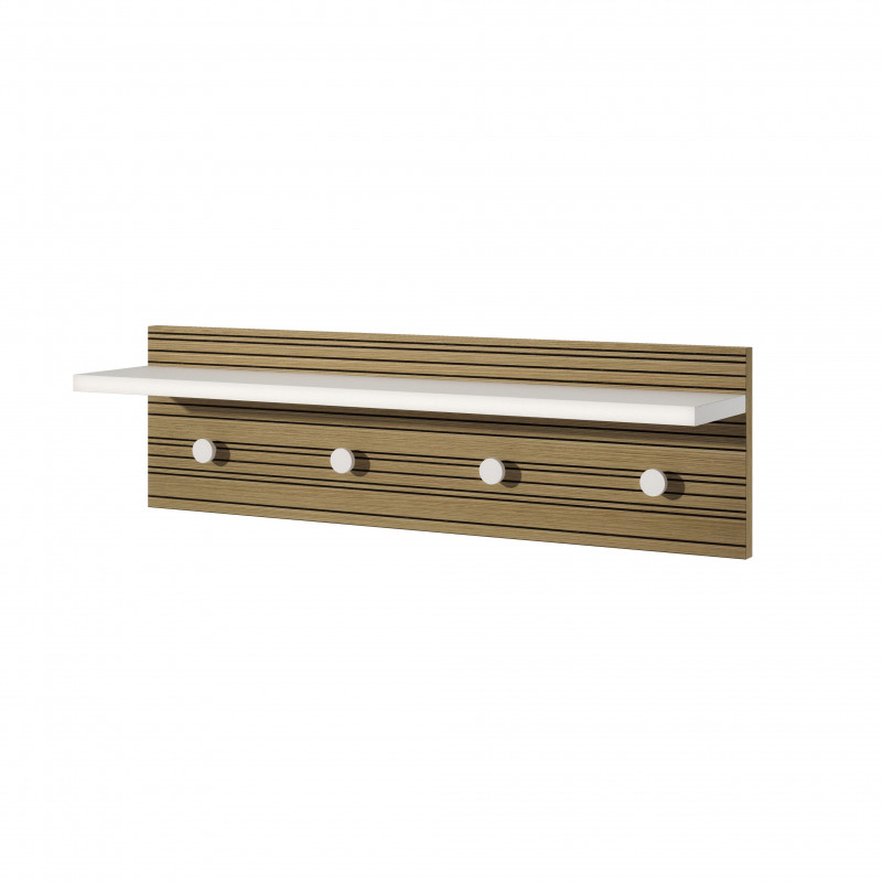 Pannello appendiabiti a parete con ripiano e 4 ganci bianco con retro rovere rigato 80x15x23 cm - Terraneo