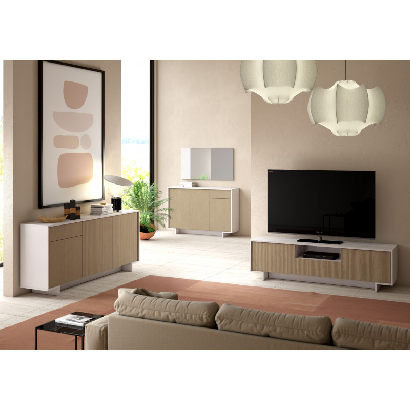 Madia Frame 3 ante con cassetto push to open bianco e cannetè chiaro 170x42x78 cm - Terraneo