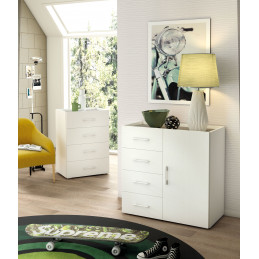 Mobile multiuso 4 cassetti con anta e piano vassoio effetto cemento bianco 90x41x87 cm - Terraneo
