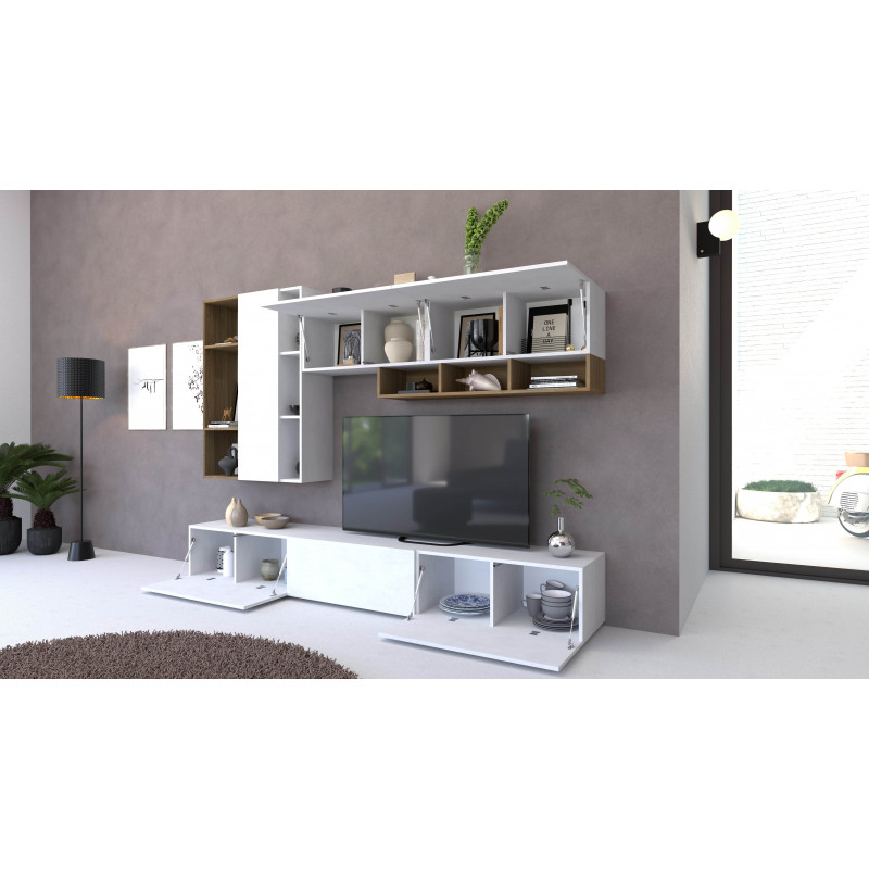 Structure sp. 18mm and doors th. 16mm, sides and top visible, ABS edge without sharp corner Contains 8 adjustable shelves Satin chrome painted handles and feet (in structure finish with Cast Iron or Titanium) Assembled kit cabinet < br /> Structure in Light Elm Color and Front in Flamed White Technical measures: - Height: 190cm - Width: 83cm -...