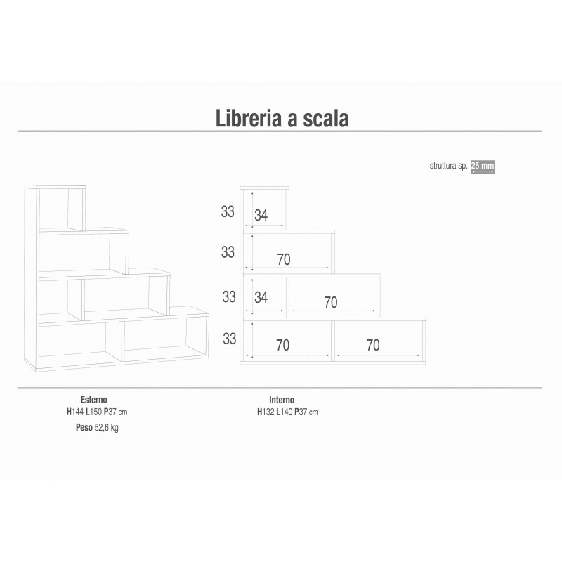Libreria a Scala 150L x 38P x h144 – Finitura Bianco Opaco – Sarmog