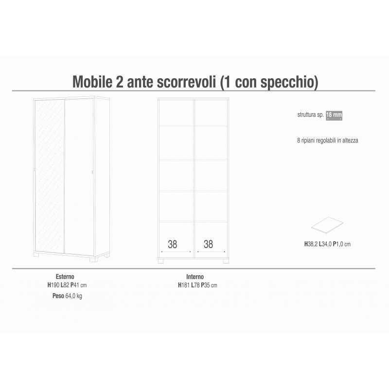Structure sp. 18mm and doors th. 16mm, sides and top visible, ABS edge without sharp corner Contains 8 adjustable shelves Satin chrome painted handles and feet (in structure finish with Cast Iron or Titanium) Assembled kit cabinet < br /> Structure in Light Elm Color and Front in Flamed White Technical measures: - Height: 190cm - Width: 83cm -...