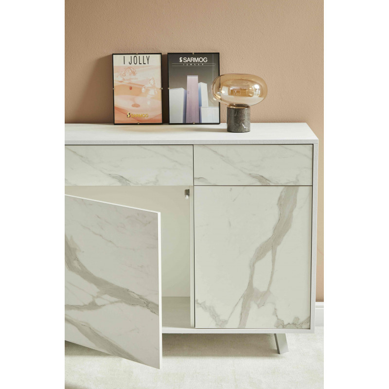 Structure sp. 18mm and doors th. 16mm, sides and top visible, ABS edge without sharp corner Contains 8 adjustable shelves Satin chrome painted handles and feet (in structure finish with Cast Iron or Titanium) Assembled kit cabinet < br /> Structure in Light Elm Color and Front in Flamed White Technical measures: - Height: 190cm - Width: 83cm -...