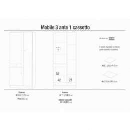 Structure sp. 18mm and doors th. 16mm, sides and top visible, ABS edge without sharp corner Contains 8 adjustable shelves Satin chrome painted handles and feet (in structure finish with Cast Iron or Titanium) Assembled kit cabinet < br /> Structure in Light Elm Color and Front in Flamed White Technical measures: - Height: 190cm - Width: 83cm -...
