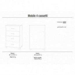 Mobile 4 Cassetti 70L x 41P x h112 – Finitura Olmo Chiaro e Bianco Fiammato – Sarmog