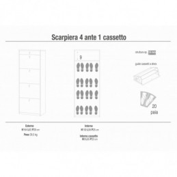 Scarpiera 4 Ante e 1 Cassetto 63L x 29P x h164 – Finitura Legno Noce Stelvio – Sarmog
