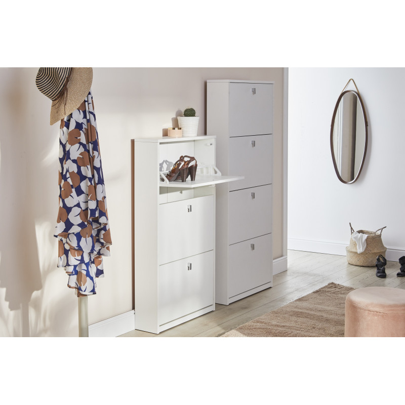 Scarpiera 4 Ante Specchio 63L x 18P x h154 – Finitura Bianco Fiammato – Sarmog