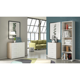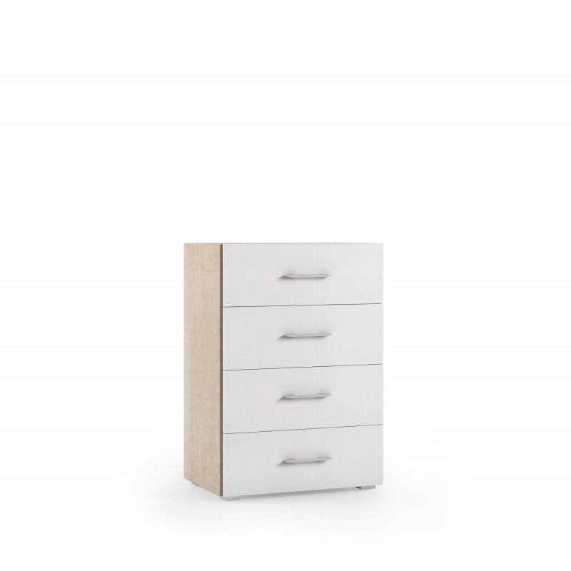 Cassettiera 4 cassetti con guide in metallo e piano vassoio rovere con frontali bianchi 60x41x87 cm - Terraneo