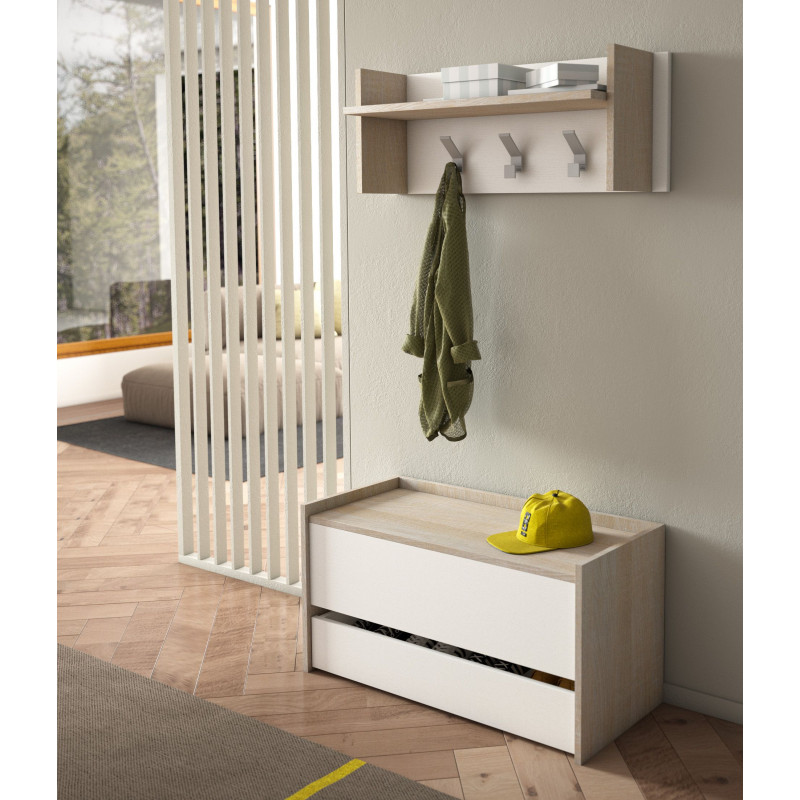Baule contenitore con chiusura rallentata e cassetto con guide in metallo rovere e bianco 90x40x46 cm - Terraneo