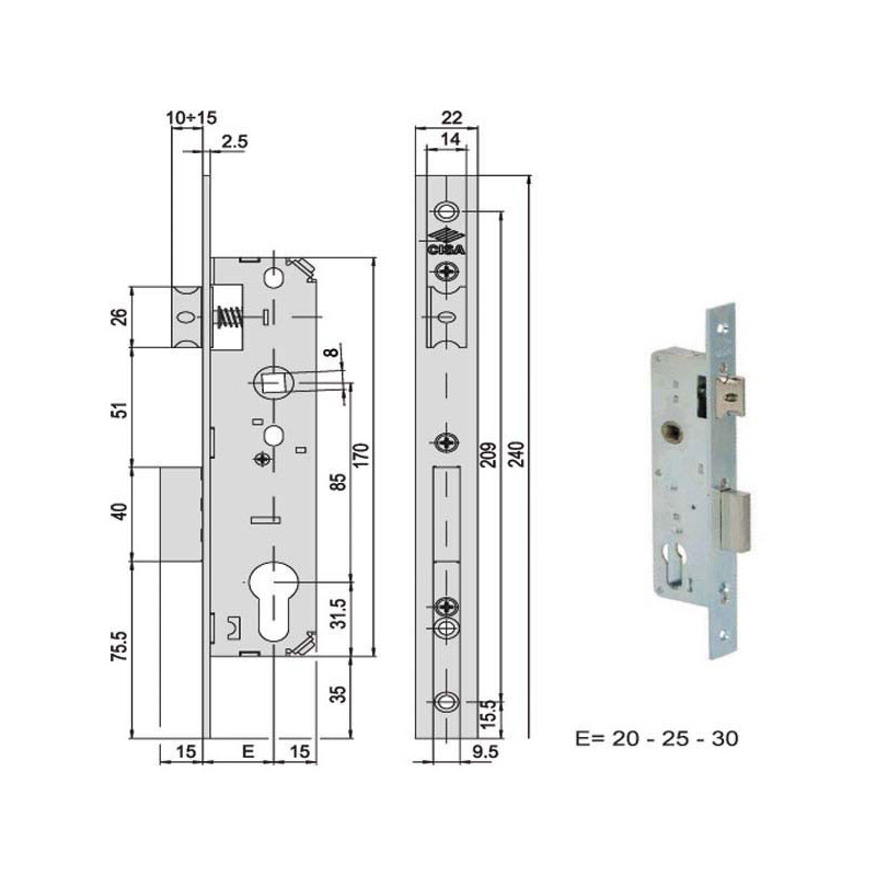 Serratura Infilare Montanti All 44661-20-0 Cisa