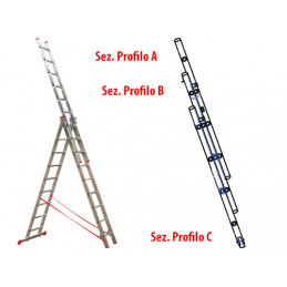 Scala alluminio Brixo Step Up triplice 3×13 gradini – Altezza ~7,00 m