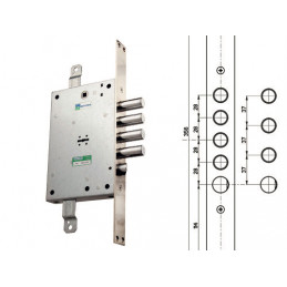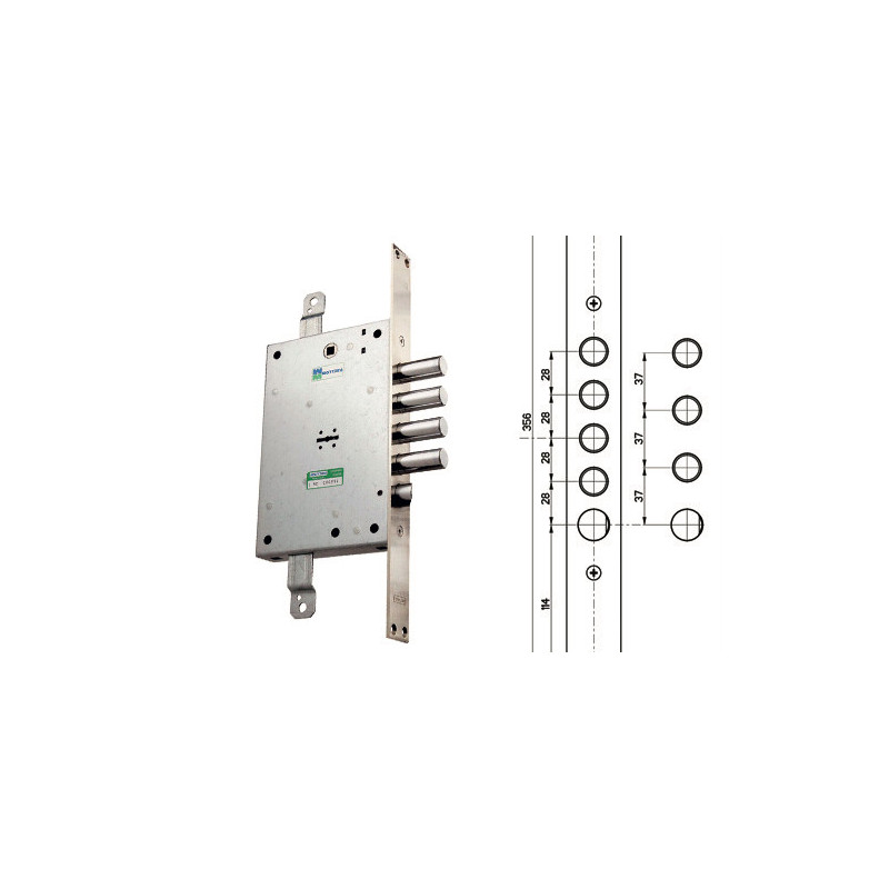Serratura per porta blindata destra triplice (interasse 28 mm, argento) – 4 mandate – Mottura
