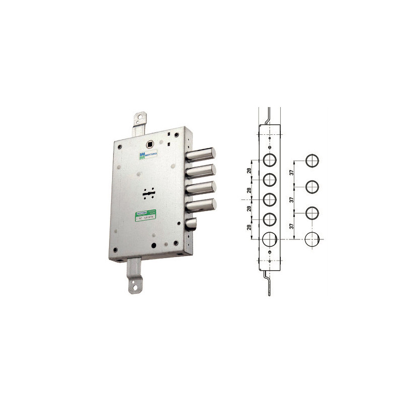 Serratura per porta blindata sinistra triplice (interasse 28 mm) – 4 mandate – Mottura