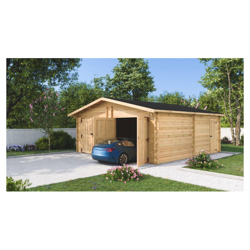 Garage doppio in legno 620x620 cm – Pareti 60 mm – Tetto 42 m² – Porta laterale – Vendôme – VN6262S Foresta