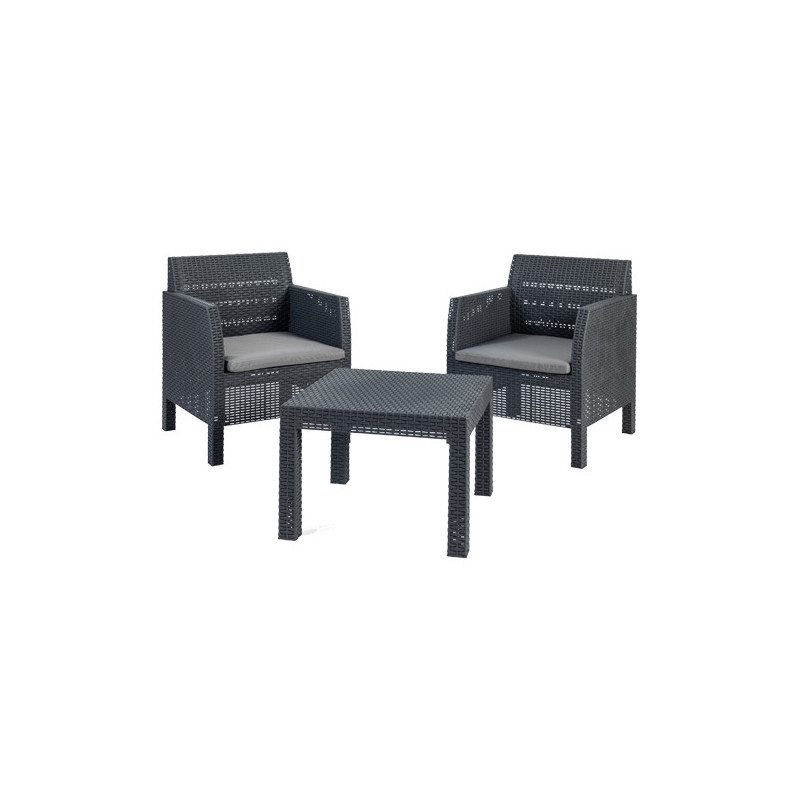 Set salotto da giardino 2 posti in resina effetto rattan – Poltrone e tavolino – Toomax Matilde antracite