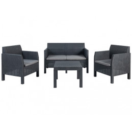 Set salotto da giardino 4 posti in resina effetto rattan – Divano, poltrone e tavolino – Toomax Matilde antracite