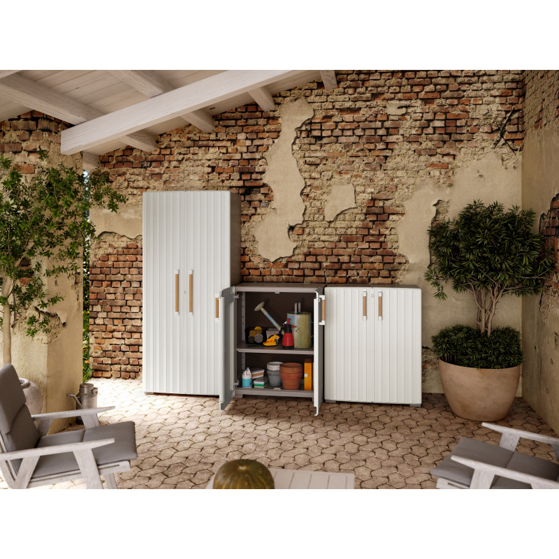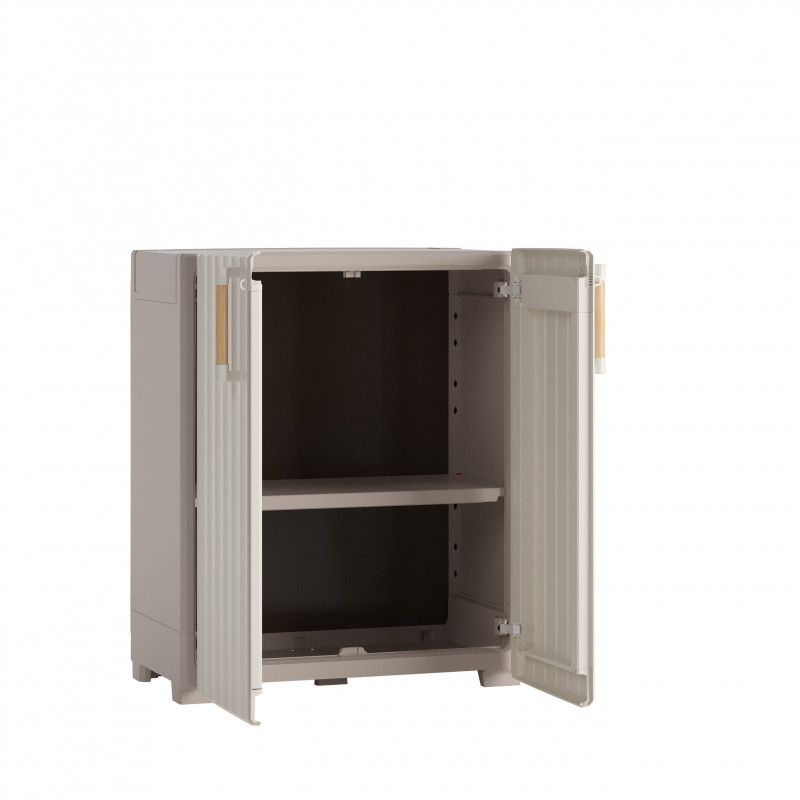 Armadietto da esterno in resina basso 80x45x98 cm - Impermeabile IPX - 2 ante 1 ripiano regolabile - Sabbia/Beige - Groove Basso - Keter