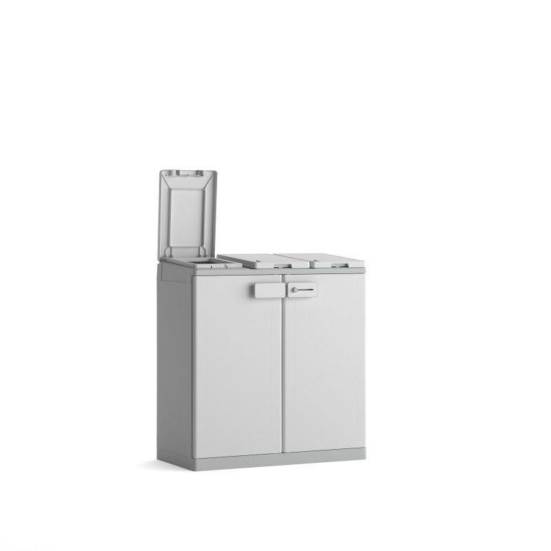 Armadio da esterno raccolta differenziata 3 vani 96x45x87 cm Bianco/Grigio chiudibile - ReCyclo Basic - Keter