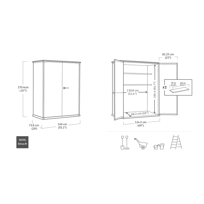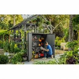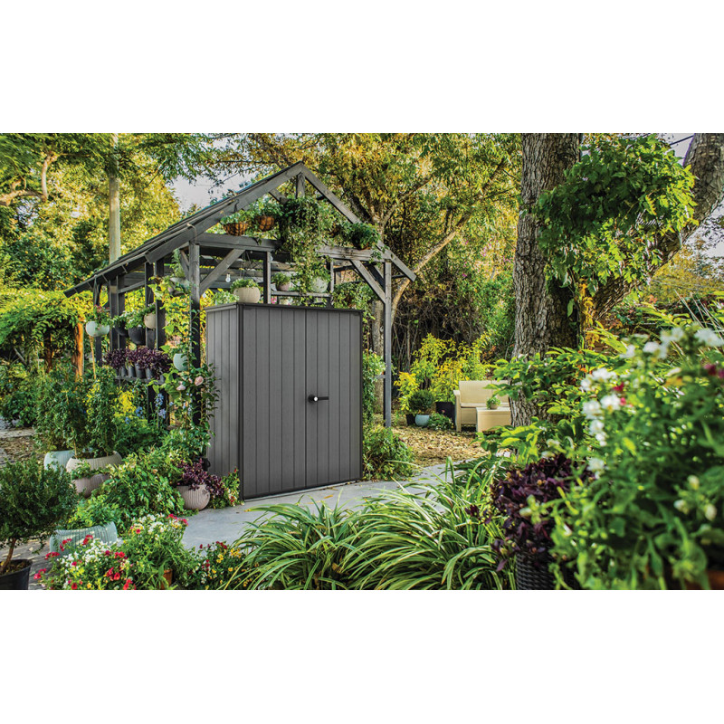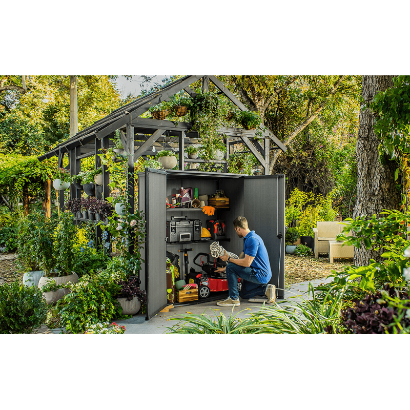 Armadio Porta Attrezzi da Esterno Cortina Alto EVOTECH+ 1400L 140x73,6x170,4 - Grigio effetto legno - Keter