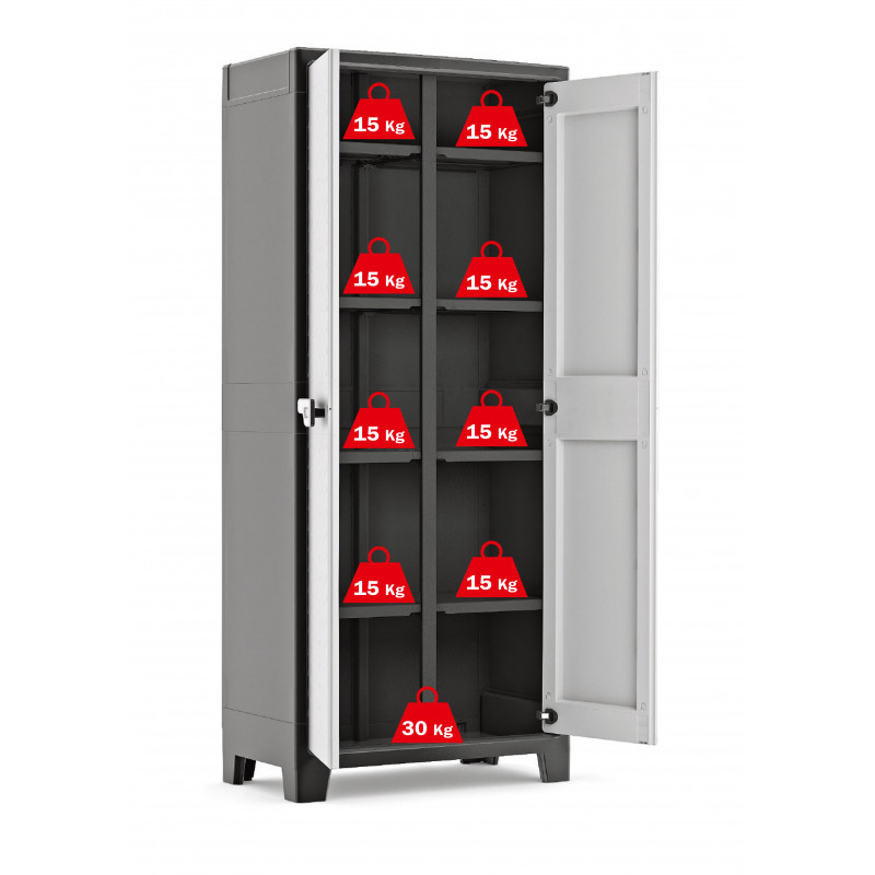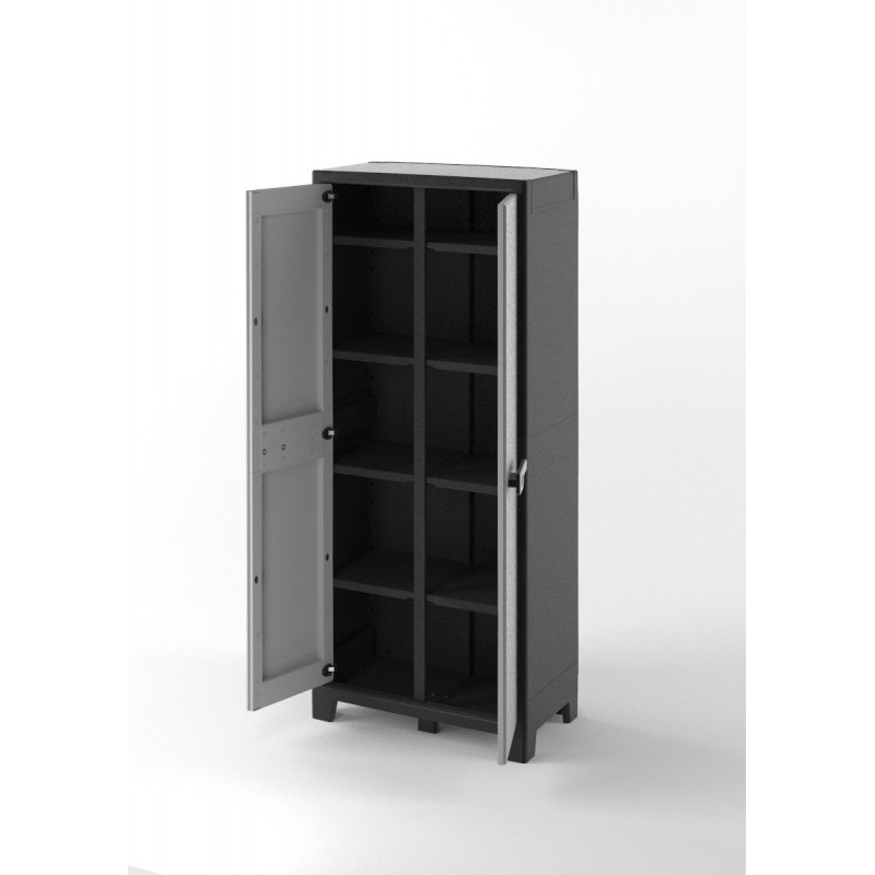 Armadio portascope da esterno in resina impermeabile IPX3 2 ante 8 ripiani 80x44x182 cm Grigio/Nero - Titan Multispace - Keter
