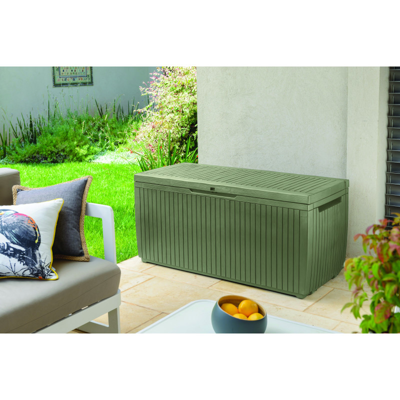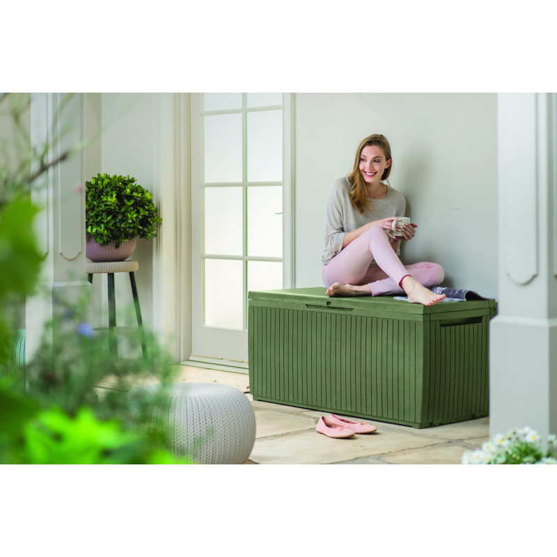 Baule da Esterno Springwood 305L con Ruote e Seduta - Effetto Legno Verde - Keter