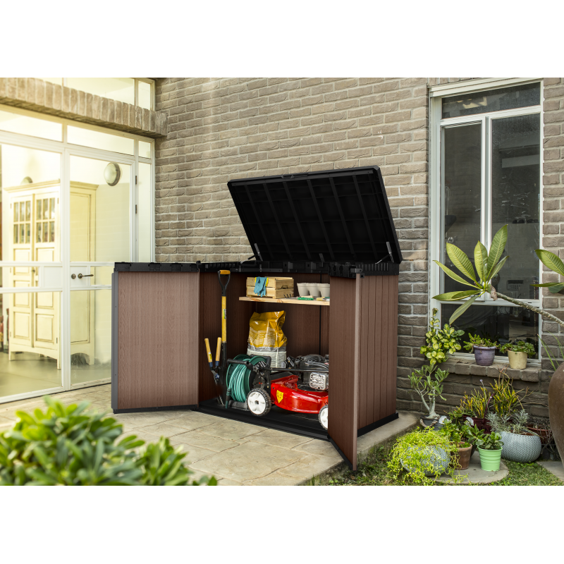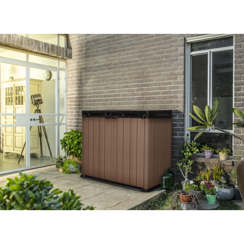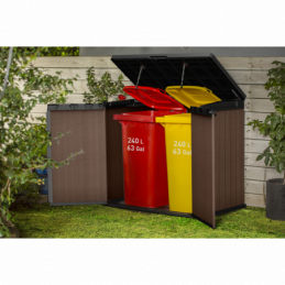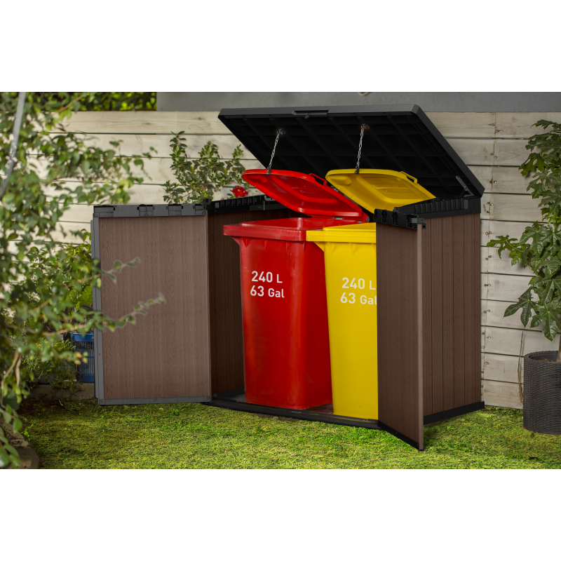 Box Porta Attrezzi e Bidoni da Esterno Keter Store-It-Out Darwin EVOTECH+ - Marrone - 1150L (2x240L) 140x80x120 -Keter