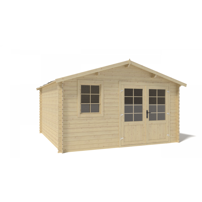 Material: Raw untreated fir Construction type blockhouse Dimensions: Wall thickness mm 19 Dimensions a floor cm 200X200 Internal dimensions cm 184x184 Internal floor area 3.39 sq m Maximum height cm 218 Wall height cm 183 < p>Features: Double door with handle and lock 125X185h cm Optional floor 12 mm OSB roof included Bituminous felt paper...
