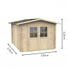 Technical dimensions: -Wall thickness 19 mm -External width (A) 198 cm -External depth (B) 198 cm -Internal width (C) 176 cm -Internal depth (D) 176 cm -Internal surface area 3.10 m2 -Minimum height (h1) 183 cm - Maximum height (h2) 215 cm - Eaves length (G) 208 cm - Pitch development (S) 123 cm - Roof area 5.12 m2