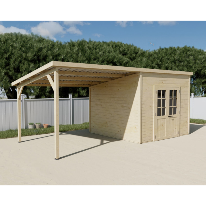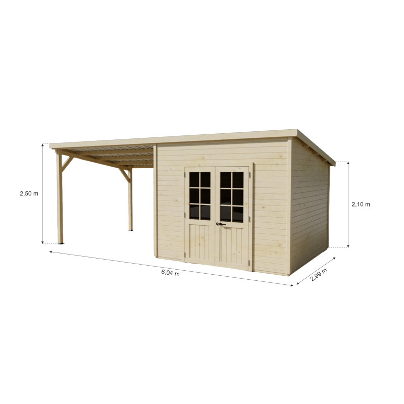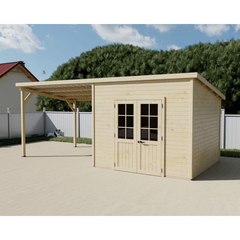 Casetta in legno da giardino 280x280 cm con legnaia – Spessore pareti 28 mm – Tetto acciaio zincato – Vetrate in vetro – LAX3030.02B Foresta