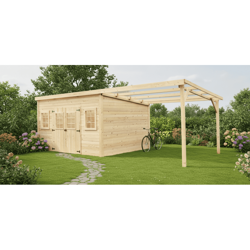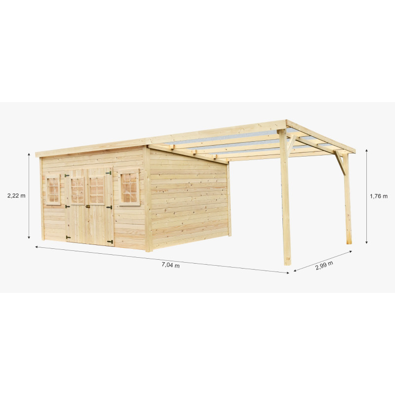 Casetta in legno da giardino 280x280 cm con legnaia – Spessore pareti 28 mm – Tetto policarbonato – Finestre fisse – LA4030B Foresta