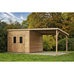 Casetta in legno da giardino 280x280 cm con legnaia – Spessore pareti 28 mm – Tetto policarbonato – Vetrate acrilico – LA3030B Foresta