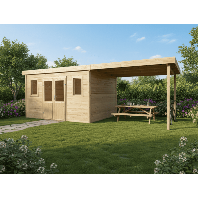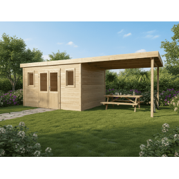 Casetta in legno da giardino 380x280 cm con legnaia – Spessore pareti 28 mm – Tetto acciaio zincato – Vetrate in vetro – LAX4030.02B Foresta