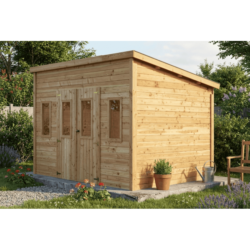 Casetta in legno da giardino 380x280 cm – Spessore pareti 28 mm – Tetto policarbonato – Finestre fisse – LA4030 Foresta