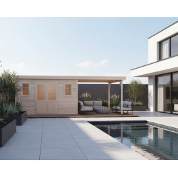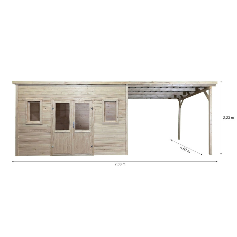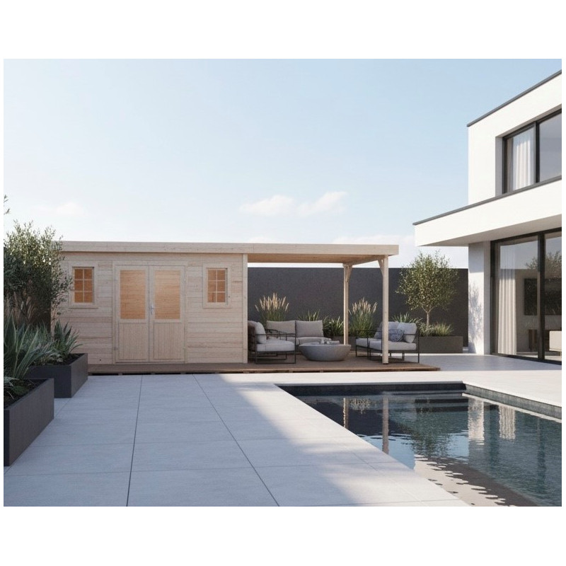 Casetta in legno da giardino 380x380 cm con legnaia – Spessore pareti 28 mm – Tetto acciaio zincato – Vetrate in vetro – SLX4040B Foresta