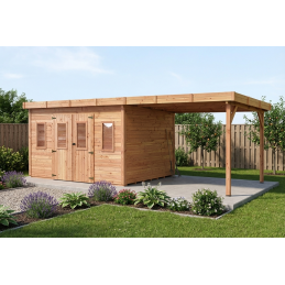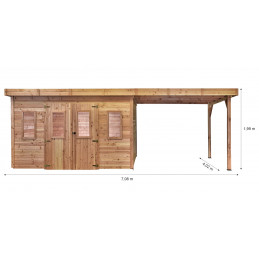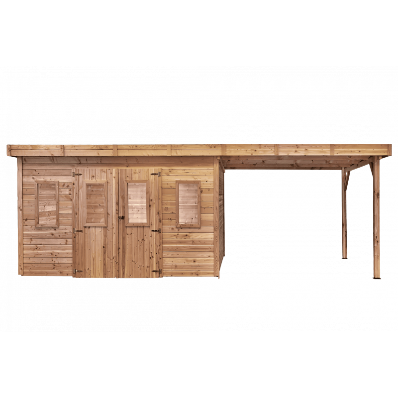 Casetta in legno da giardino 380x380 cm con legnaia – Spessore pareti 28 mm – Tetto piano policarbonato – SL4040B Foresta