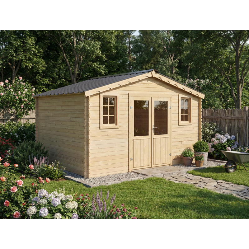 Casetta in legno da giardino 380x480 cm – Abete 28 mm con tetto in acciaio zincato – Porta doppia e finestra – BAX4050.02 Foresta
