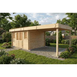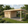 Casetta in legno da giardino con legnaia 274x674 cm – Abete 42 mm – Tetto piano in acciaio – Porta vetrata – BRE4030.02B Foresta