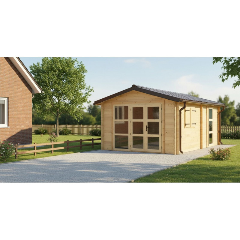 Chalet garage in legno abete 360x548 cm – Spessore pareti 60 mm – Doppi vetri e persiane – TA3655A Foresta