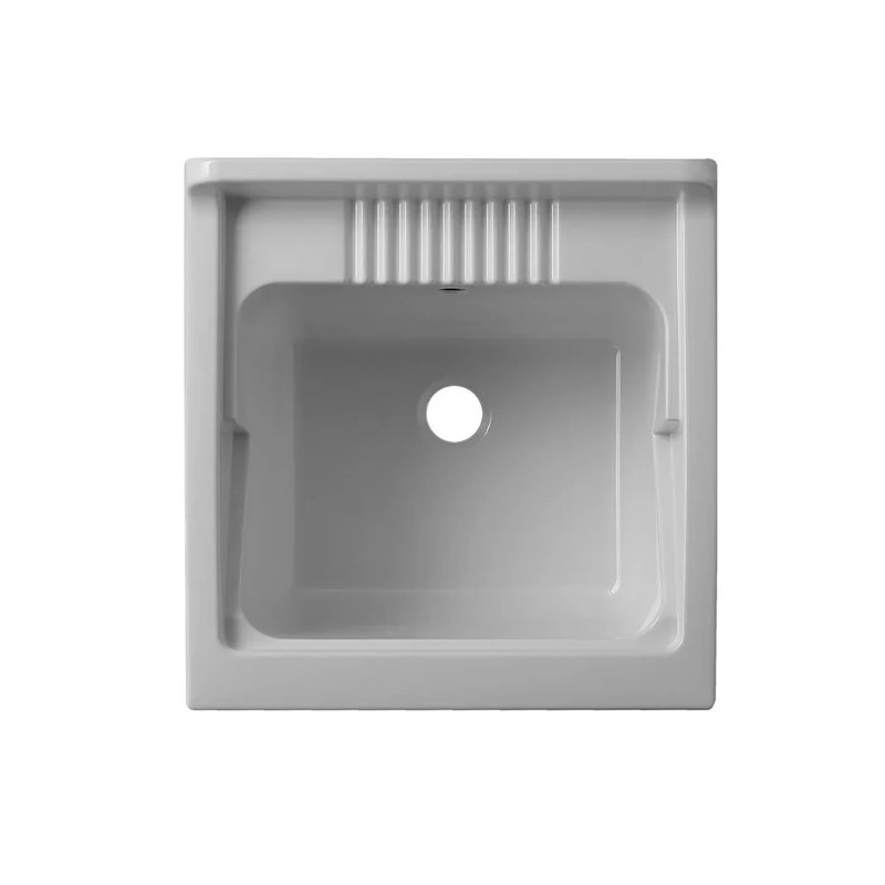 Furniture in white W100 water-repellent melamine, thickness 18 mm Doors with square corners Chrome handles Bath in acid-resistant plastic resin Washing board in polypropylene Self-cleaning siphon complete with drain and overflow 15 mm height adjustable feet Drillable tank for tap installation Siphon discharge 35-45 cm from the ground