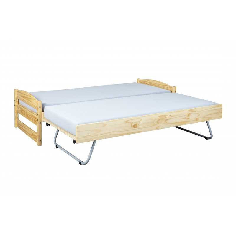 Double bed + 3 drawers 90x200 in white stained pine Excluding bed bases Dim. l 90x190