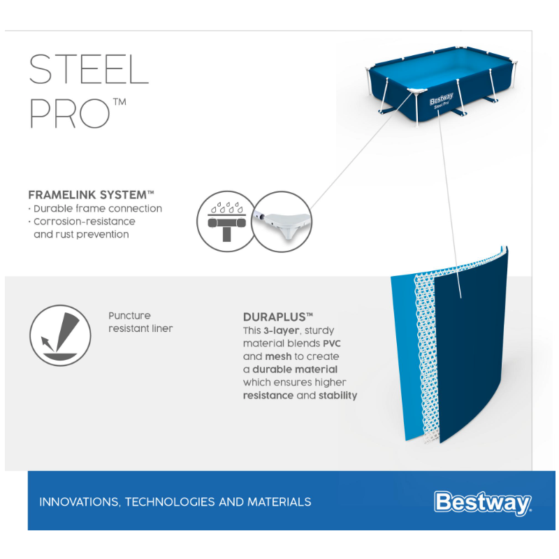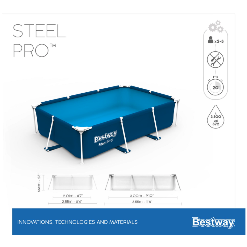 Piscina fuori terra rettangolare con telaio in acciaio, dimensioni 300x201x66 cm capacità 3300 L, per giardino e spazi esterni - Bestway