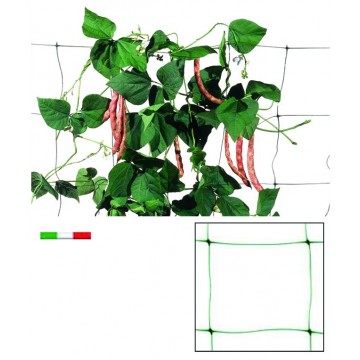 Plastic net for climbing plants, characterized by a large fine mesh, suitable for supporting long-stemmed vegetables and flowers in the growth and production phase, with a rectangular mesh of 17x15 cm, 200 cm high in a 10 m roll. Vigor brand