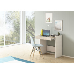 Scrivania home office 80x40 con cassetto e ripiano estensibile piano rovere bianco - Terraneo