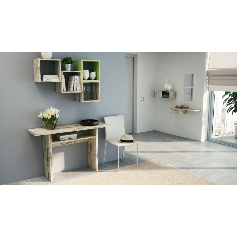 Tavolo consolle estensibile Oplà con piano ribaltabile e vano portaoggetti vintage 120x35/70x75 cm - Terraneo