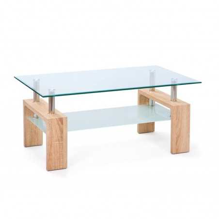 Coffee table with structure in raw oak laminated mdf and safety glass Dim.110x60xh.45 cm
